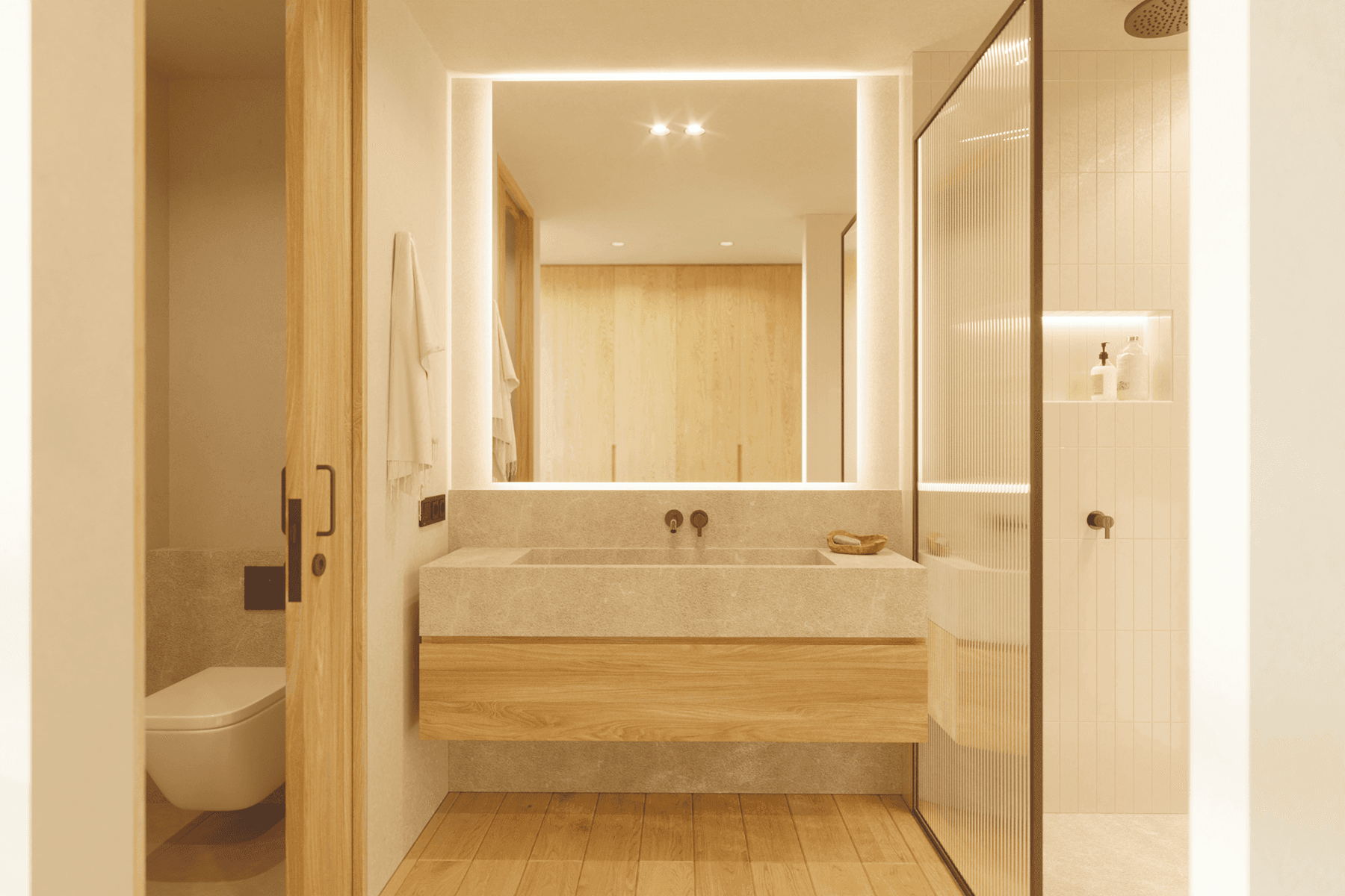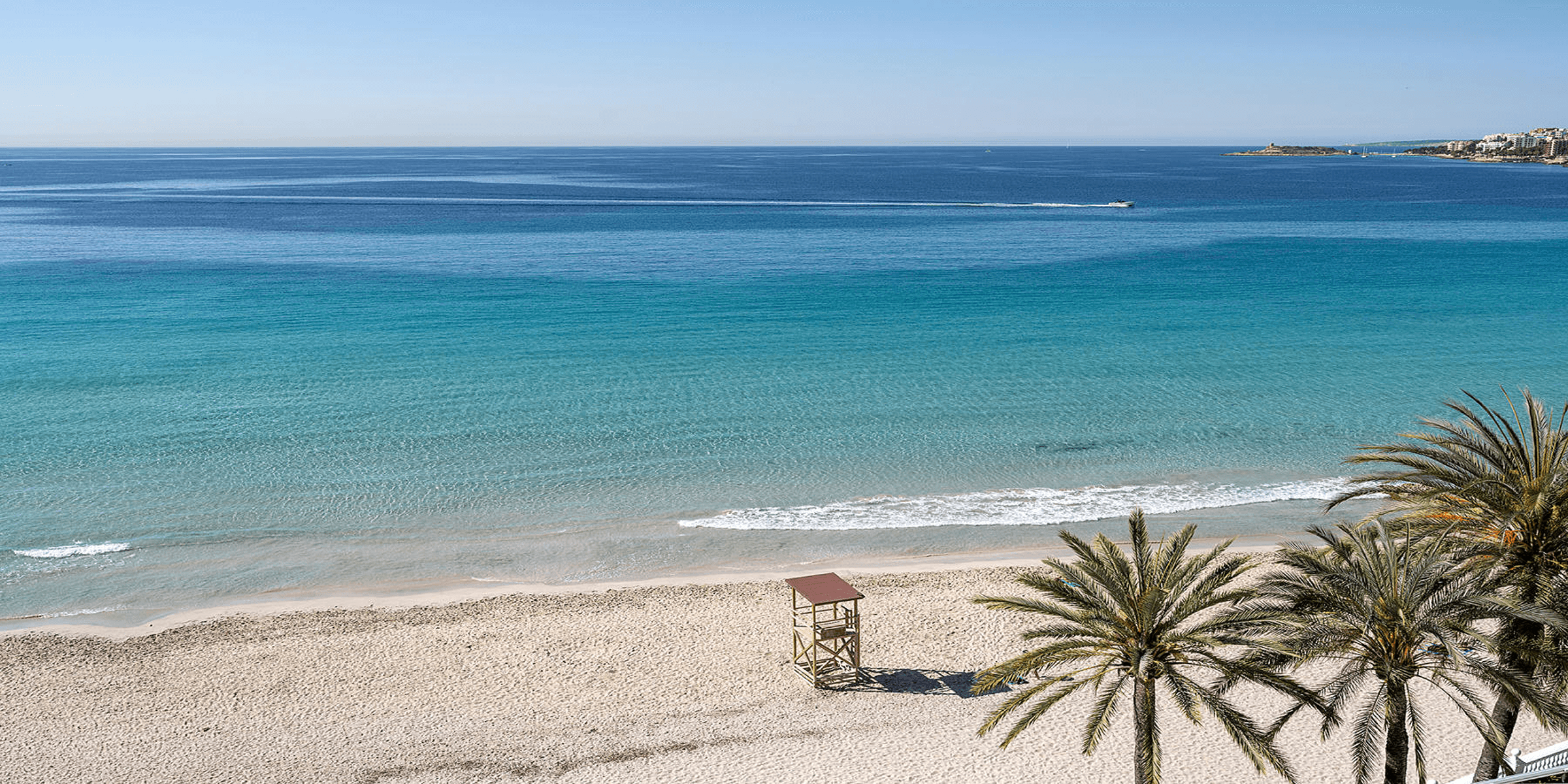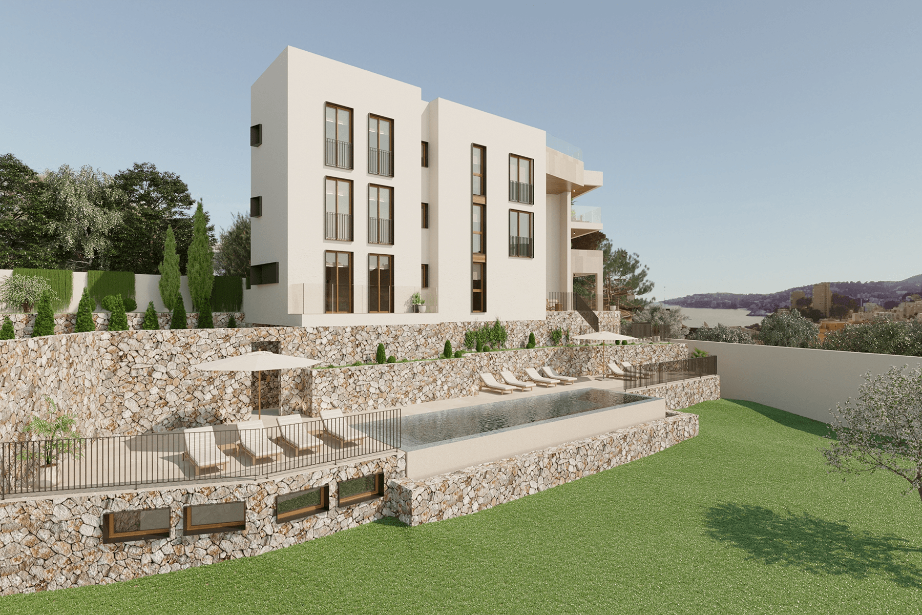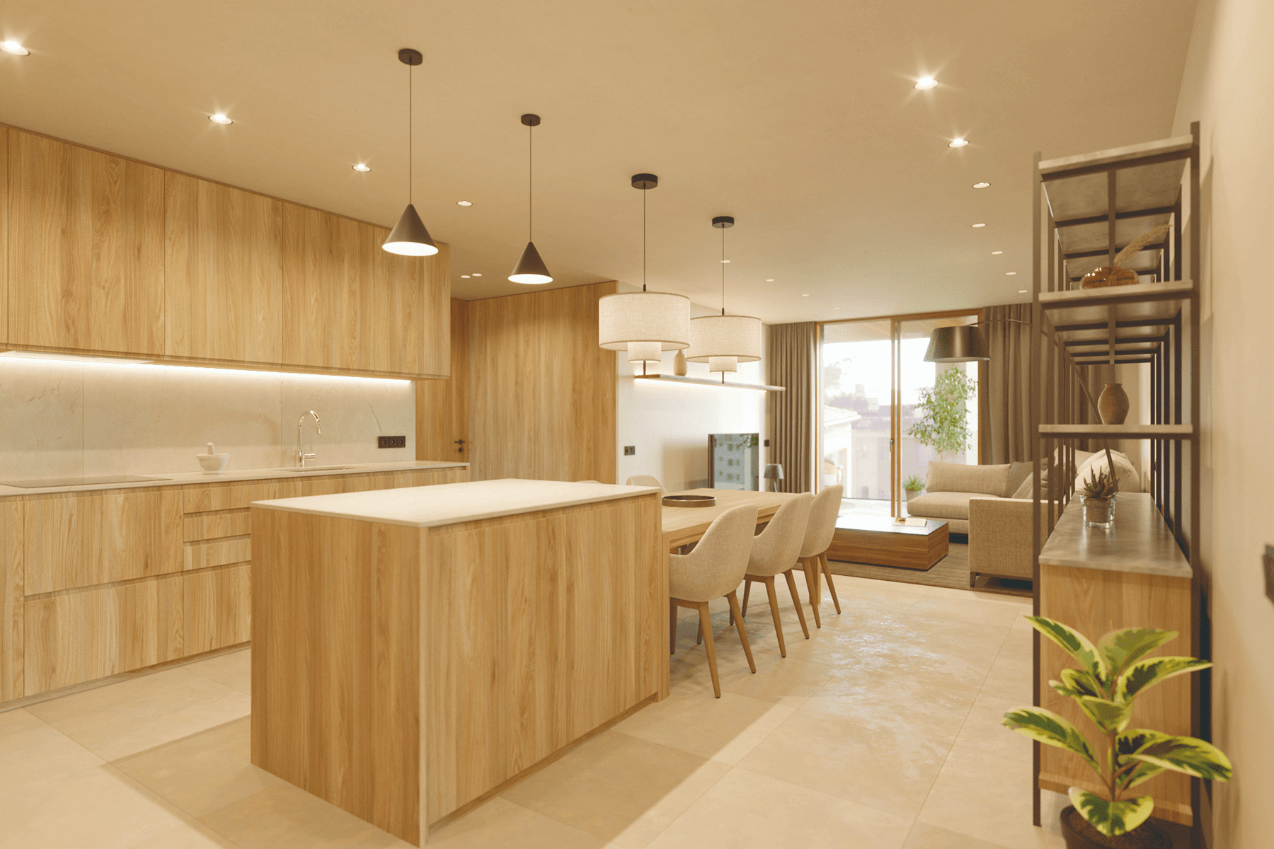 This elegant three-bedroom apartment is located on the first floor of a newly built building in Cala Major, combining modern design with the relaxed charm of Mediterranean life. With a surface area of 121.4 m², the residence offers two bathrooms, an open concept living and dining area, and a fully equipped designer kitchen with high-end appliances. Large windows fill the interiors with sunlight and open to a private porch overlooking the sea, creating a cozy space to enjoy the coastal atmosphere of Mallorca.