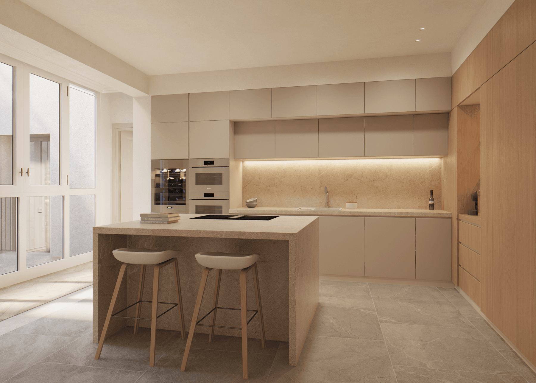 This luxurious 170 m² apartment stands out for its intelligent and contemporary design. The property features two spacious bedrooms and two full bathrooms, including an en-suite bathroom that offers privacy and comfort. Large exterior windows flood the rooms with natural light, creating a warm and welcoming atmosphere throughout the home. The kitchen, a true avant-garde design, is equipped with a central island that not only provides additional workspace but also becomes an ideal meeting point within the home. Read more