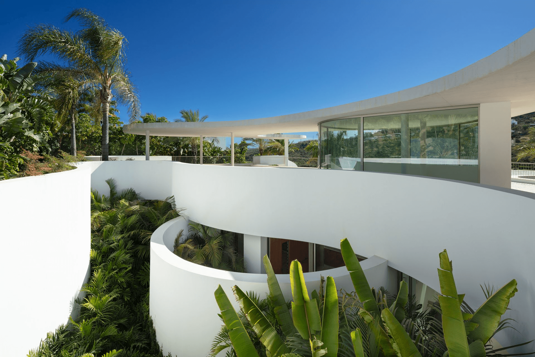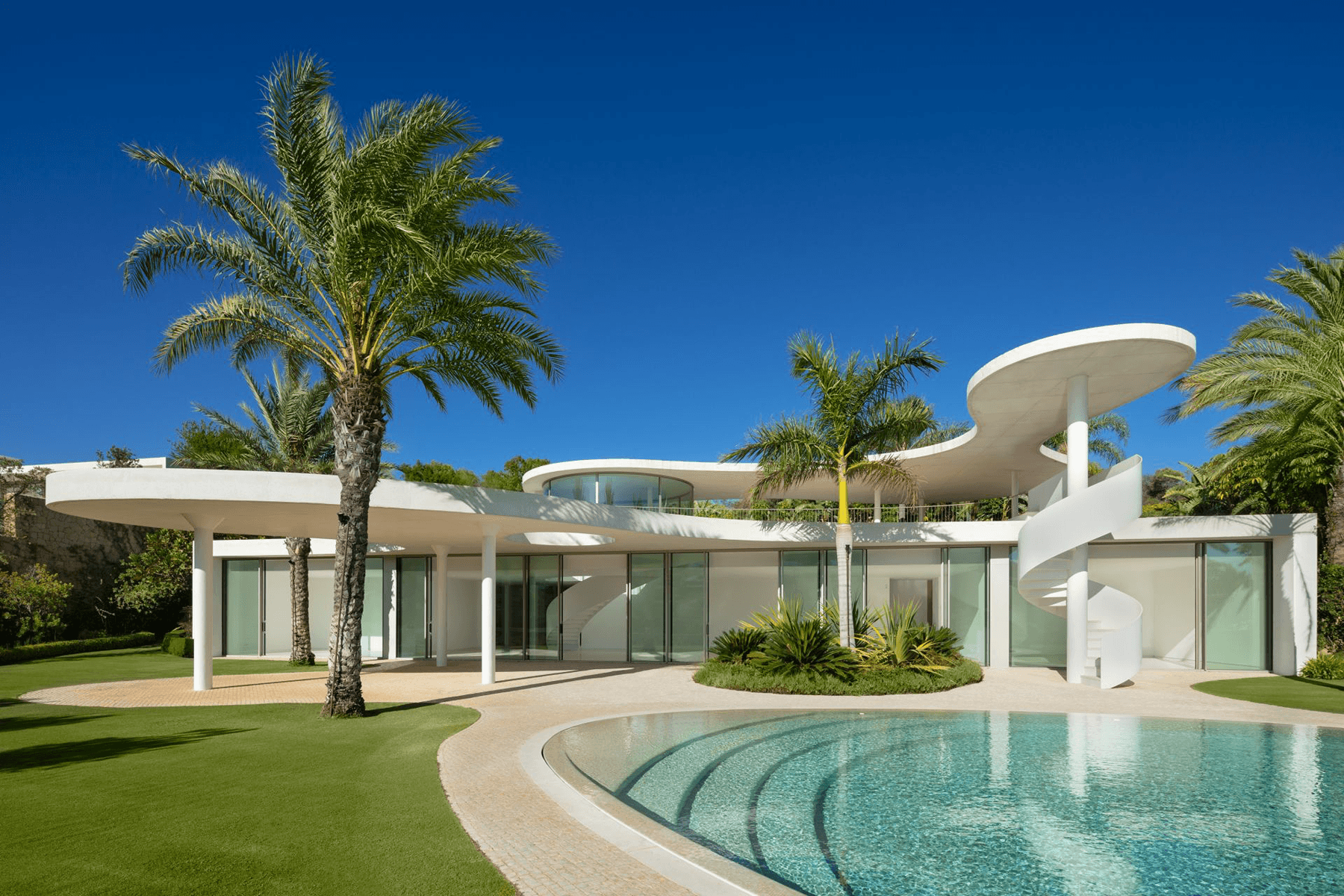 Designed by architects Vicens & Ramos, this futuristic villa seamlessly integrates with its surroundings. The ground floor features all living spaces, while the upper level offers a dome-shaped entrance and a spiral staircase. Abundant windows and sliding glass doors blur the boundaries between indoor and outdoor spaces. Read more