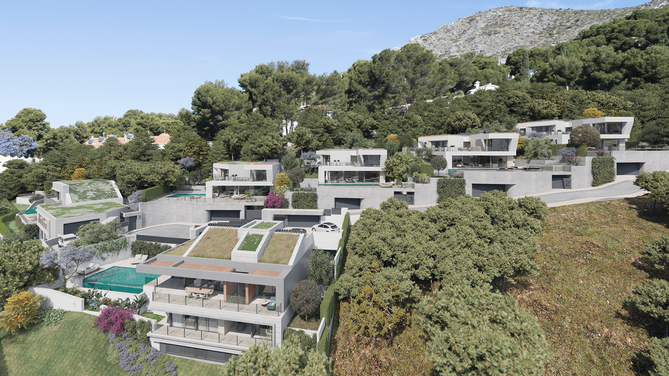 Wonderful independent villa located in the exclusive gated community in Pinares de San Antón, in Malaga capital. This contemporary house, part of a prestigious development, has a total built area of 566 sqm and a covered area of 319 sqm. With floor-to-ceiling windows, the open-plan living spaces are filled with natural light and offer stunning panoramic views. The minimalist kitchen, included in the price, can be customized to your liking and connects perfectly to an elegant dining area, ideal for both daily living and entertainment.